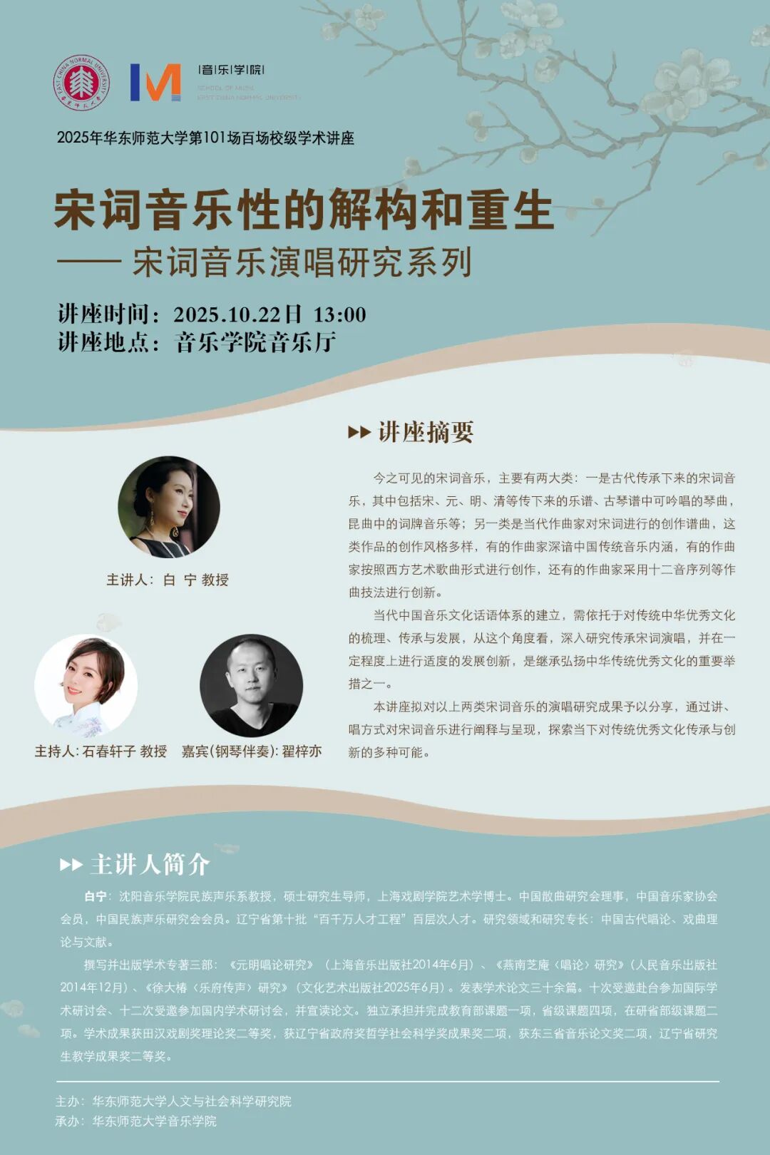 10月22日讲座预告 | 白宁:《宋词音乐性的解构和重生-宋词音乐演唱研究系列》