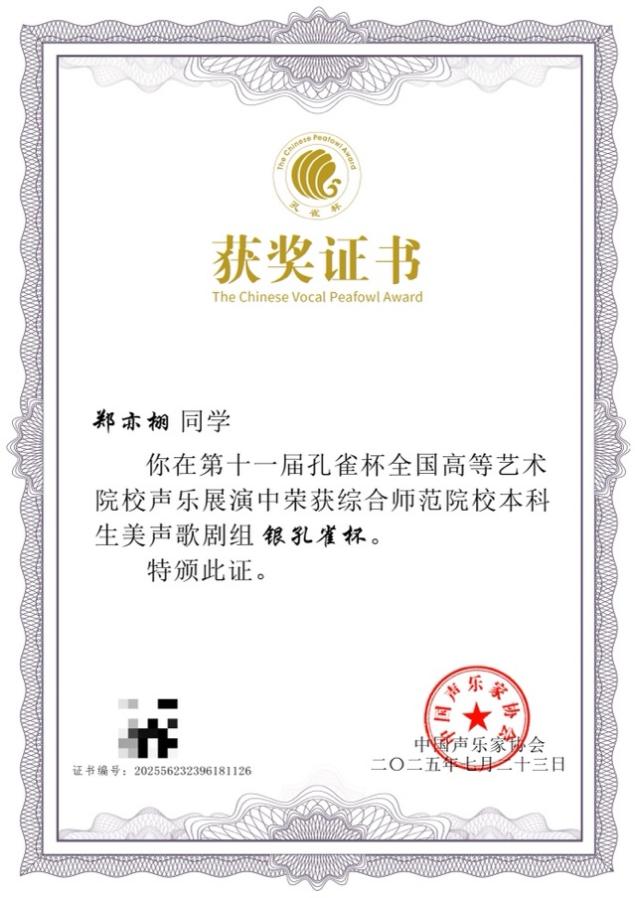 获综合师范院校本科生美声组“银孔雀杯”