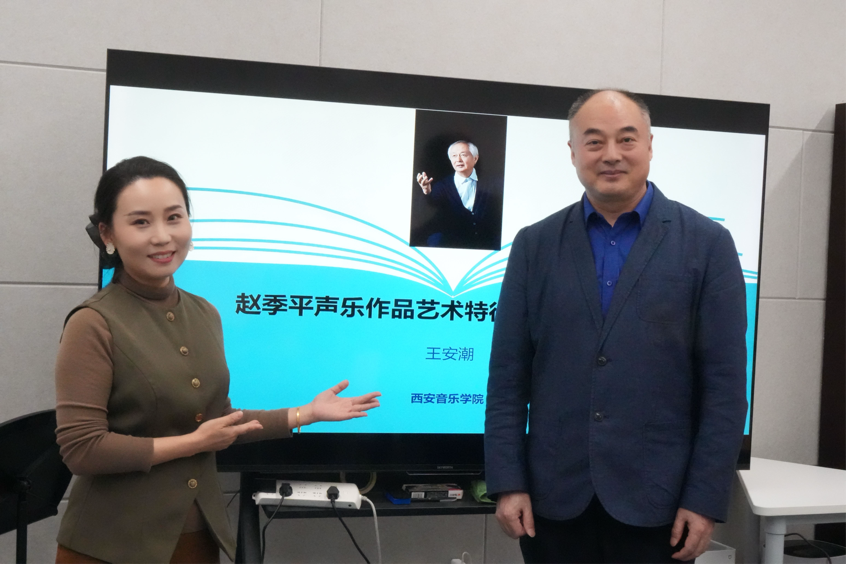 讲座开篇,王安潮教授系统梳理了赵季平声乐创作的广度与影响力:从《女儿歌》《好汉歌》等家喻户晓的影视金曲,到《唐诗歌曲八首》《中国古诗词艺术歌曲选》等兼具文学性的出版作品,再到《百姓的事儿牵着走:赵季平影视歌曲65首》等作品集,其创作既扎根大众审美,又兼具艺术深度,勾勒出中国当代民族声乐的多元版图。